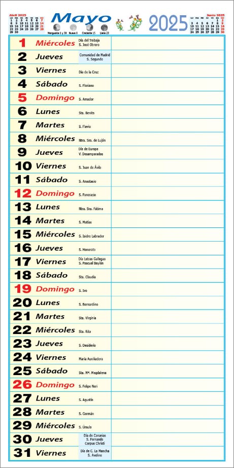 Faldillas Mensual Notas Alargada