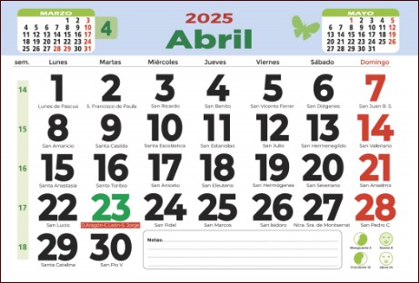 Faldilla Mensual Notas 4 Tamaños -