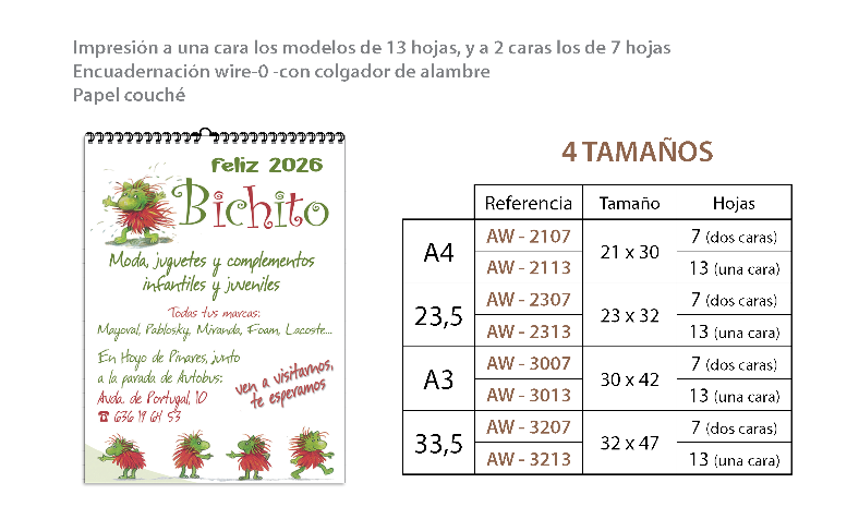 Calendario varias hojas wire-0 con colgador - Anual Calendarios